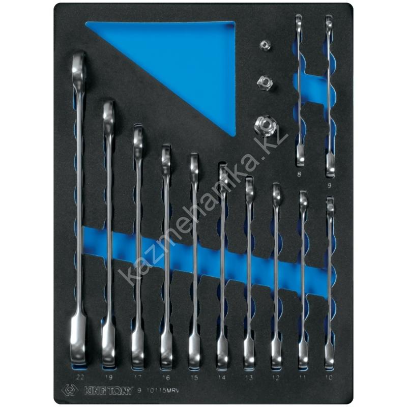 KING TONY Набор трещоточных комбинированных ключей, ложемент, 15 предметов