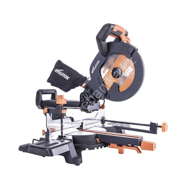 Мощность электромотора 2000 Ватт. Частота вращения диска 2500 об/мин. Масса — 15.3 кг. Диаметр отверстия для подключения пылесоса — 36 мм Размеры: 360х705х730 мм Преимущества: максимальный поворот пилы — 50 градусов, раньше было 45 направляющие, по которым движется каретка пилы, теперь закрыты сверху кожухом с обеих сторон пилы есть рукоятки для переноски в комплекте с пилой поставляется не только верхний, но и боковой прижим к пиле дается 3-летняя гарантия, при условии регистрации на сайте evolutionpowertools.com