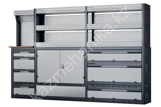 На базе автомобиля ГАЗель NEXT Модуль хранения HPR LLS26 (Блок с полками, выдвижными ящиками и полками с откидывающимися дверцами и маленьким верстаком), рекомендован с левой стороны.