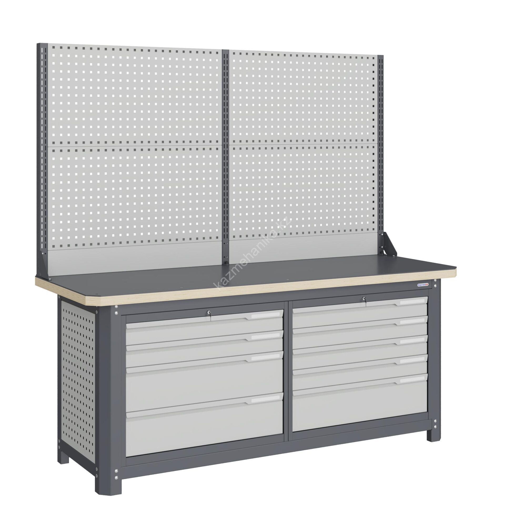 Верстак серии MECHANIC: MCN 2052.L45-2 состоит из столешницы шириной 1993 мм, рамы верстака, состоящей из опор, перемычек, боковых перфопанелей, больших модулей L4 и L5, двойного экрана с кронштейнами. Предназначен для выполнения сборочных, ремонтных, слесарных, монтажных и других видов работ на производстве, в сервисных центрах, мастерских, гаражах.