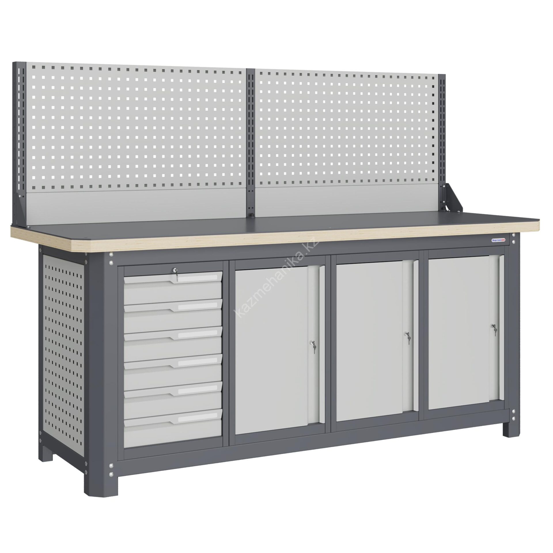 Верстак серии MECHANIC: MCN 2052.S6777-1 состоит из столешницы шириной 1993 мм, рамы верстака, состоящей из опор, перемычек, боковых перфопанелей, малых модулей S6 и S7, одинарного экрана с кронштейнами. Предназначен для выполнения сборочных, ремонтных, слесарных, монтажных и других видов работ на производстве, в сервисных центрах, мастерских, гаражах.
