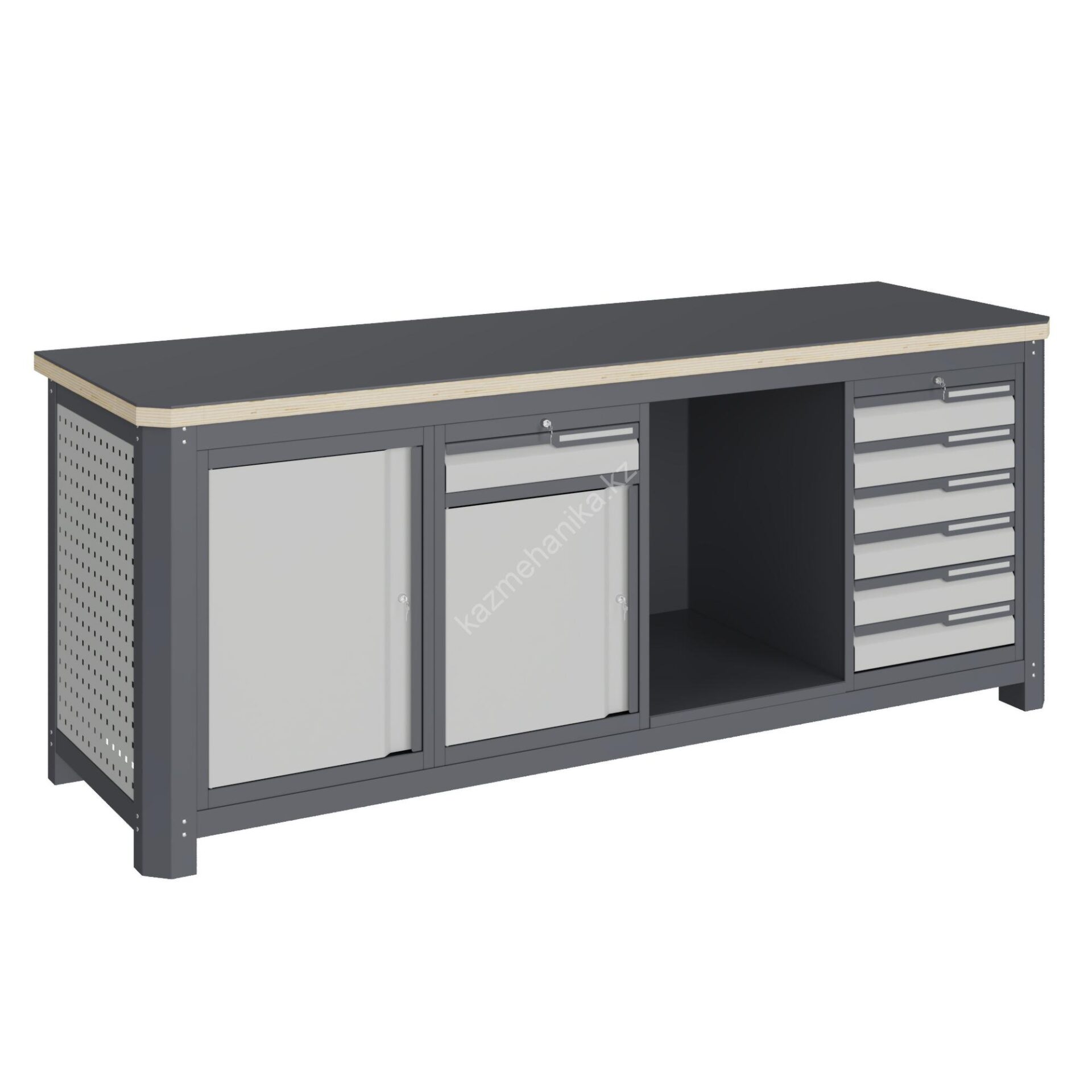 Верстак серии MECHANIC: MCN 2052.S678.1 состоит из столешницы шириной 1993 мм, рамы верстака, состоящей из опор, перемычек, боковых перфопанелей, малых модулей S6, S7, S8 и комплекта полка-стенка SW1. Предназначен для выполнения сборочных, ремонтных, слесарных, монтажных и других видов работ на производстве, в сервисных центрах, мастерских, гаражах.