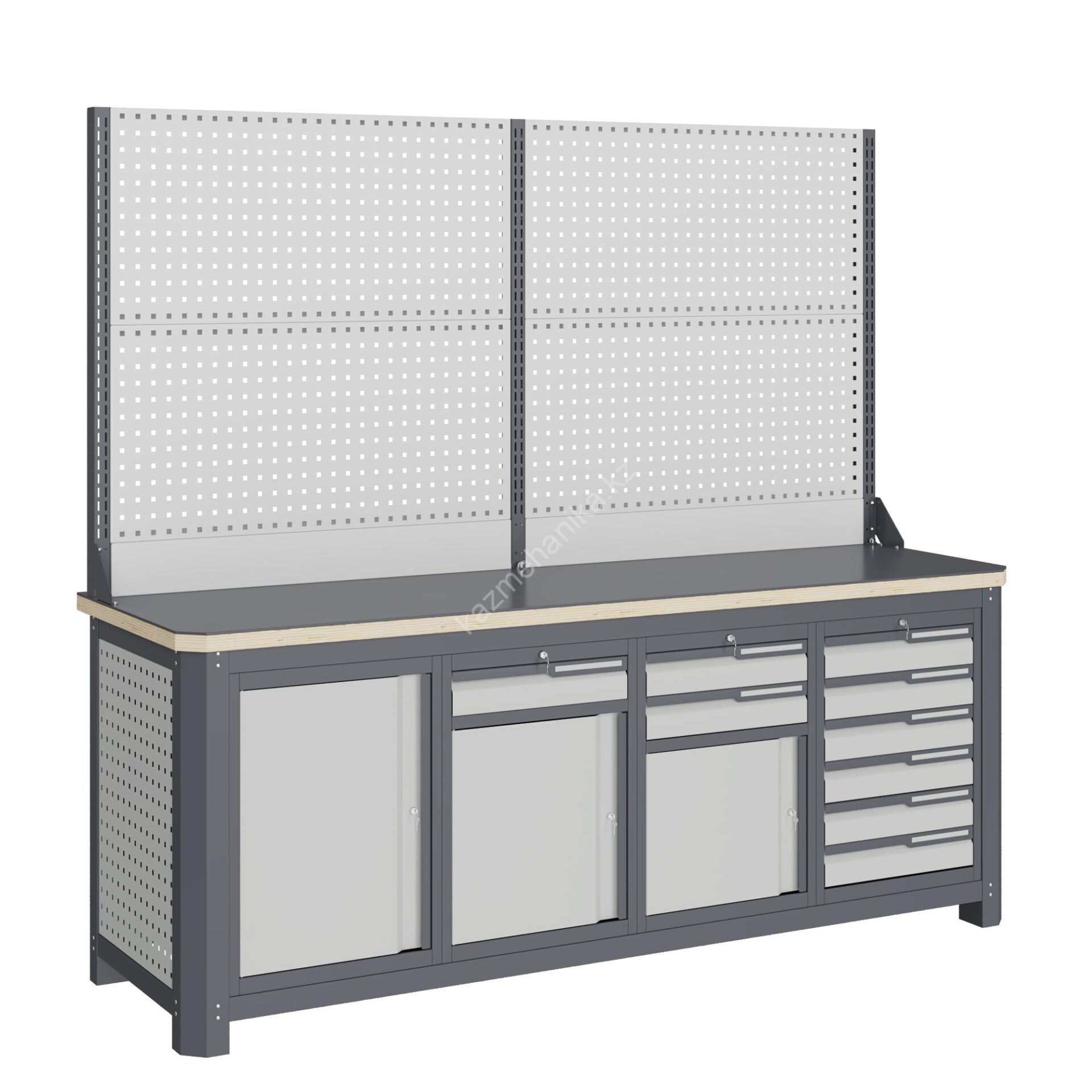 Верстак серии MECHANIC: MCN 2052.S6789-2 состоит из столешницы шириной 1993 мм, рамы верстака, состоящей из опор, перемычек, боковых перфопанелей, малых модулей S6, S7, S8 и S9, двойного экрана с кронштейнами. Предназначен для выполнения сборочных, ремонтных, слесарных, монтажных и других видов работ на производстве, в сервисных центрах, мастерских, гаражах.