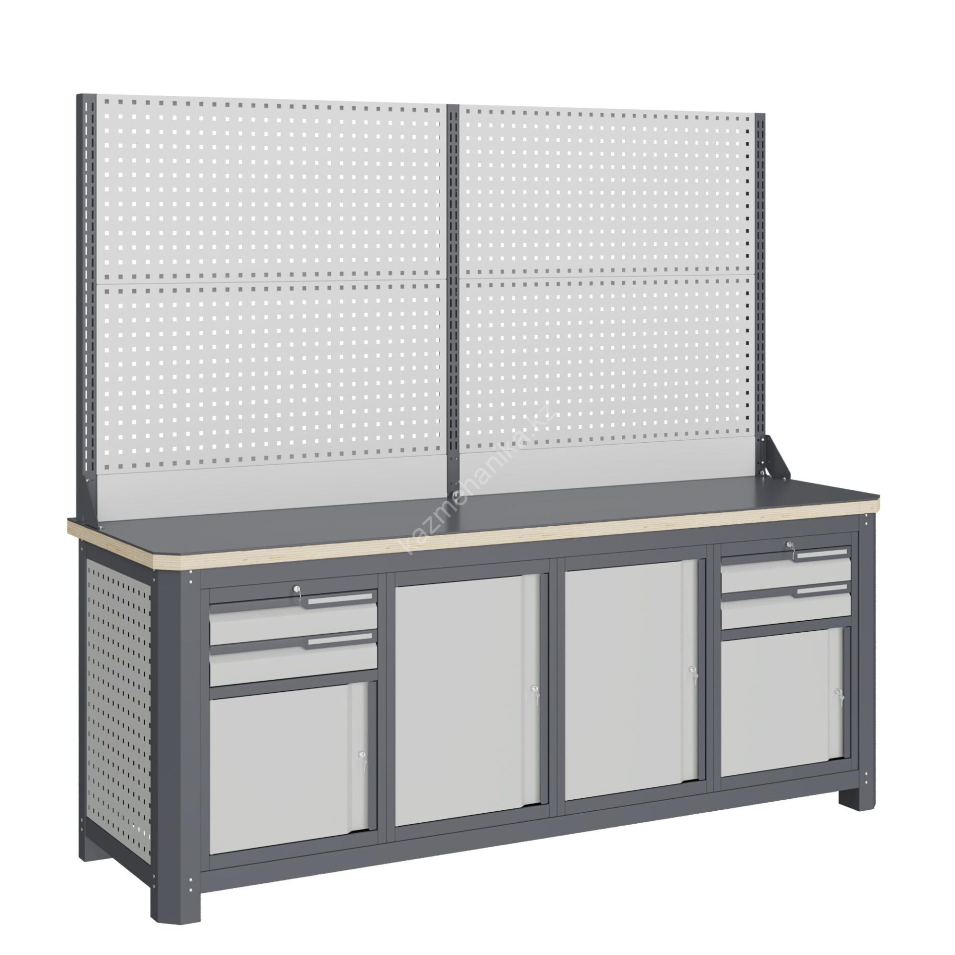 Верстак серии MECHANIC: MCN 2052.S7799-2 состоит из столешницы шириной 1993 мм, рамы верстака, состоящей из опор, перемычек, боковых перфопанелей, малых модулей S7 и S9, двойного экрана с кронштейнами. Предназначен для выполнения сборочных, ремонтных, слесарных, монтажных и других видов работ на производстве, в сервисных центрах, мастерских, гаражах.
