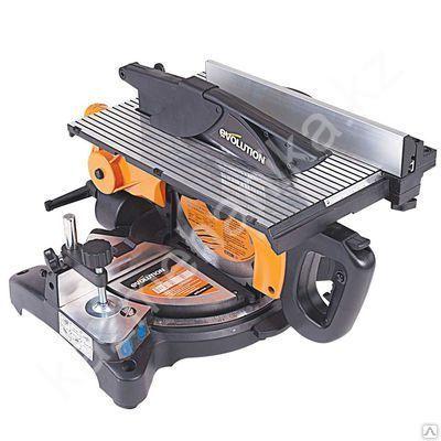 Evolution Rage 6. НЕ ВЫПУСКАЕТСЯ. СНЯТА С ПРОИЗВОДСТВА. Технические характеристики. Наибольшее число восторженных откликов от международной команды дилеров компании Evolution на выставке Practical World в 2012 году в Кельне заслужила именно эта пила. Чем же она хороша? Дело в том, что эта циркулярная пила сочетает в себе свойства отрезного торцово-усовочного станка, то есть позволяет ровно обрезать заготовки под прямым углом и любым произвольным углом до 45 градусов, а также настольной пилы. То есть, этой пилой можно обрезать кромку доски, раскроить лист фанеры, равно как и пластикового сайдинга, оцинкованной стали, профлиста. Очень удобна при как работе в одиночку, так и для целой бригады.