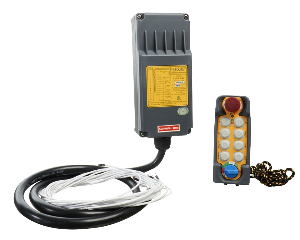 Радиоуправление «Telecrane» А21-Е2, комплект (Пульт 8 кнопок, 1 скорость + Приемник) (Питание приемника: 220/380 В) Внимание! Не допускается использование нескольких комплектов в одном месте с одинаковыми каналами