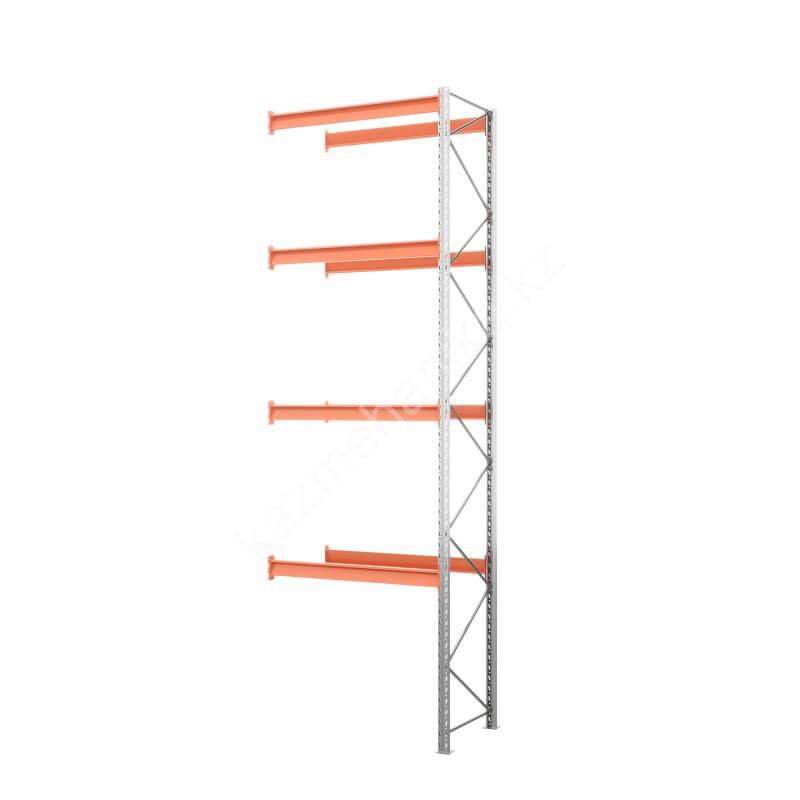 Секция приставная стеллажа металлического паллетного (6000х1800х1100 мм), 4 яруса