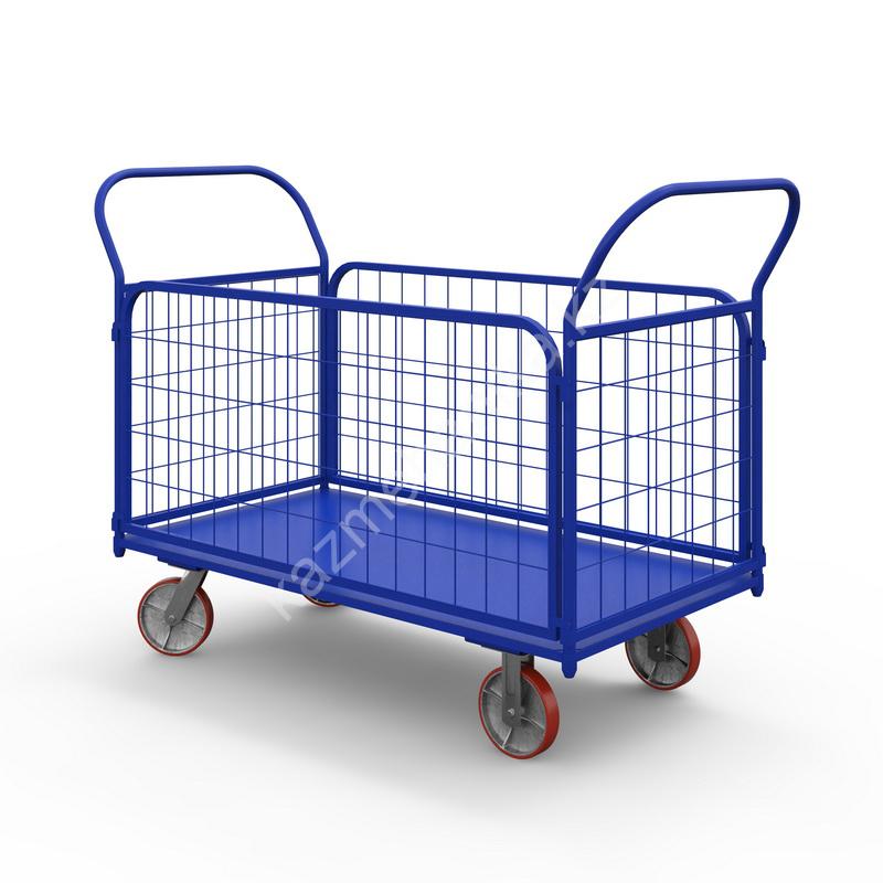 Тележка платформенная с сетчатыми бортами ТС 4 (г/п 600 кг, 1200×600 мм, колеса чугун/полиуретан 200 мм)