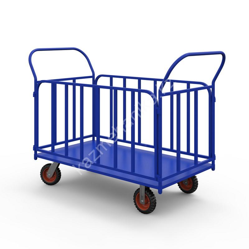 Тележка платформенная с трубчатыми бортами ТБ 5 (г/п 700 кг, 1200×700 мм, колеса литая протекторная резина 200 мм)