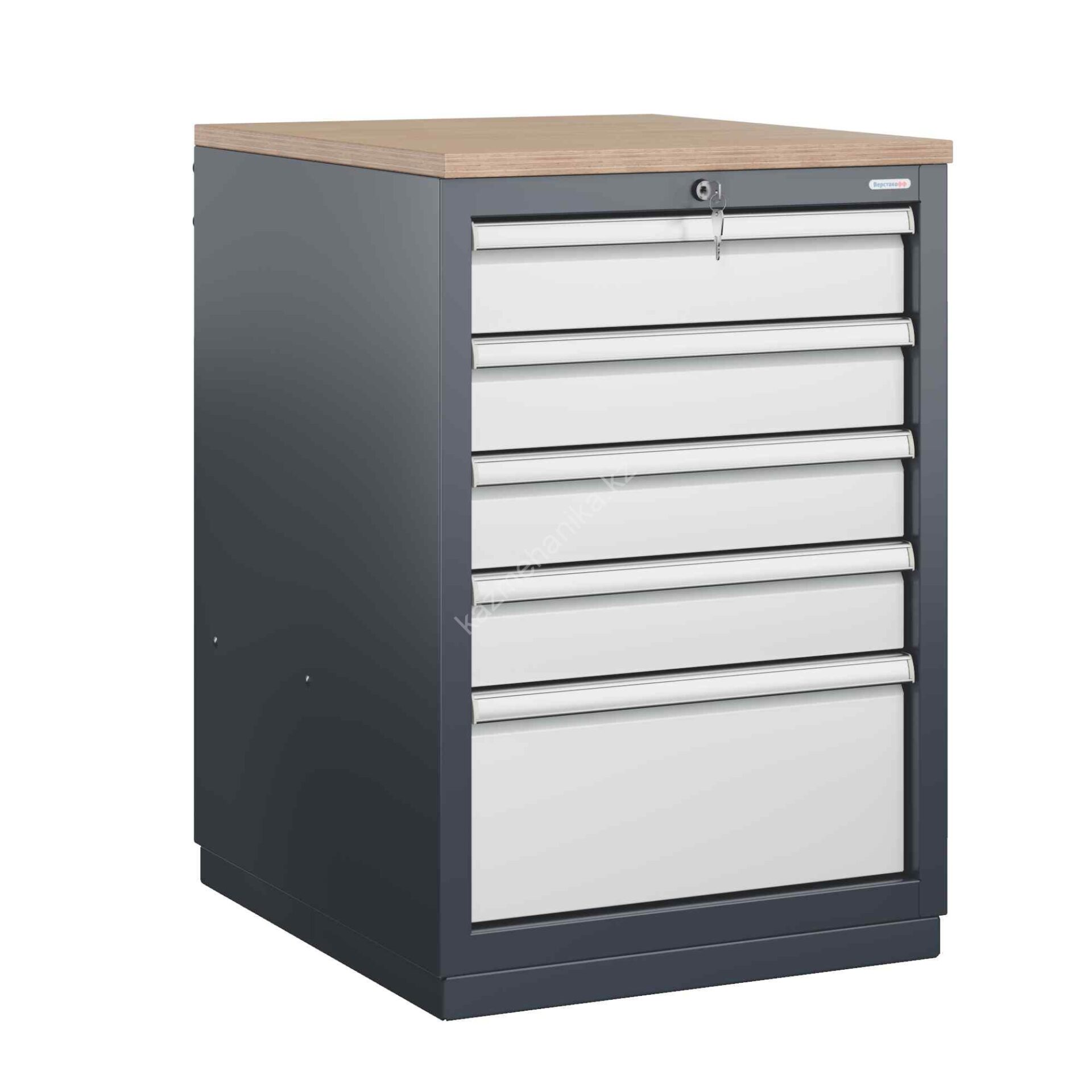 Тумба инструментальная FBK G5.0 — Тумба с 5-ю выдвижными ящиками, 4 ящика высотой 112мм, 1 ящик высотой 228мм, внутренние размеры ящиков 112 (ВхШхГмм) 80х460х500, внутренние размеры ящика 228 (ВхШхГмм) 190х460х500 фактические размеры корпуса тумбы (ВхШхГмм): 825х580х660. Система антиопрокидывания, нагрузка на ящик 100кг.
