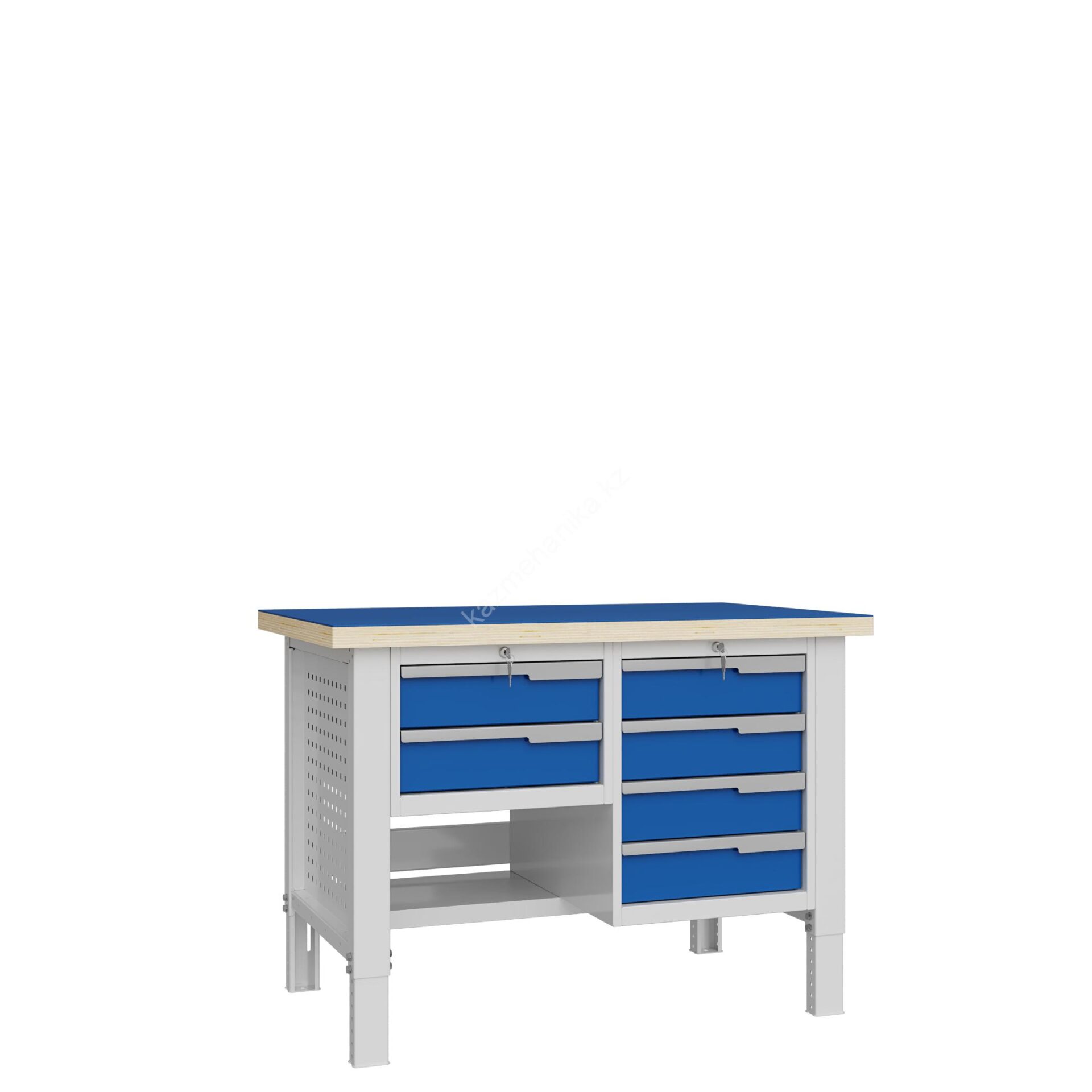 Верстак сборно-разборной конструкции. Соответствует ГОСТ Р 58863-2020. С единой рабочей поверхностью из влагостойкой фанеры марки ФСФ.