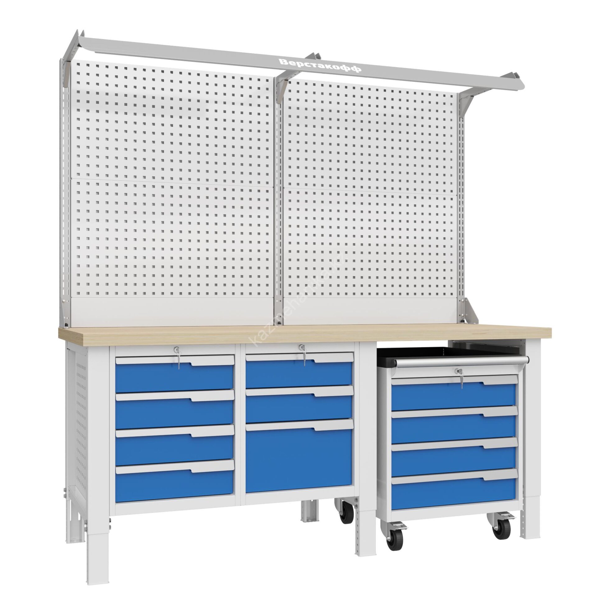 Верстак сборно-разборной конструкции. Соответствует ГОСТ Р 58863-2020. С единой рабочей поверхностью из влагостойкой фанеры марки ФСФ.