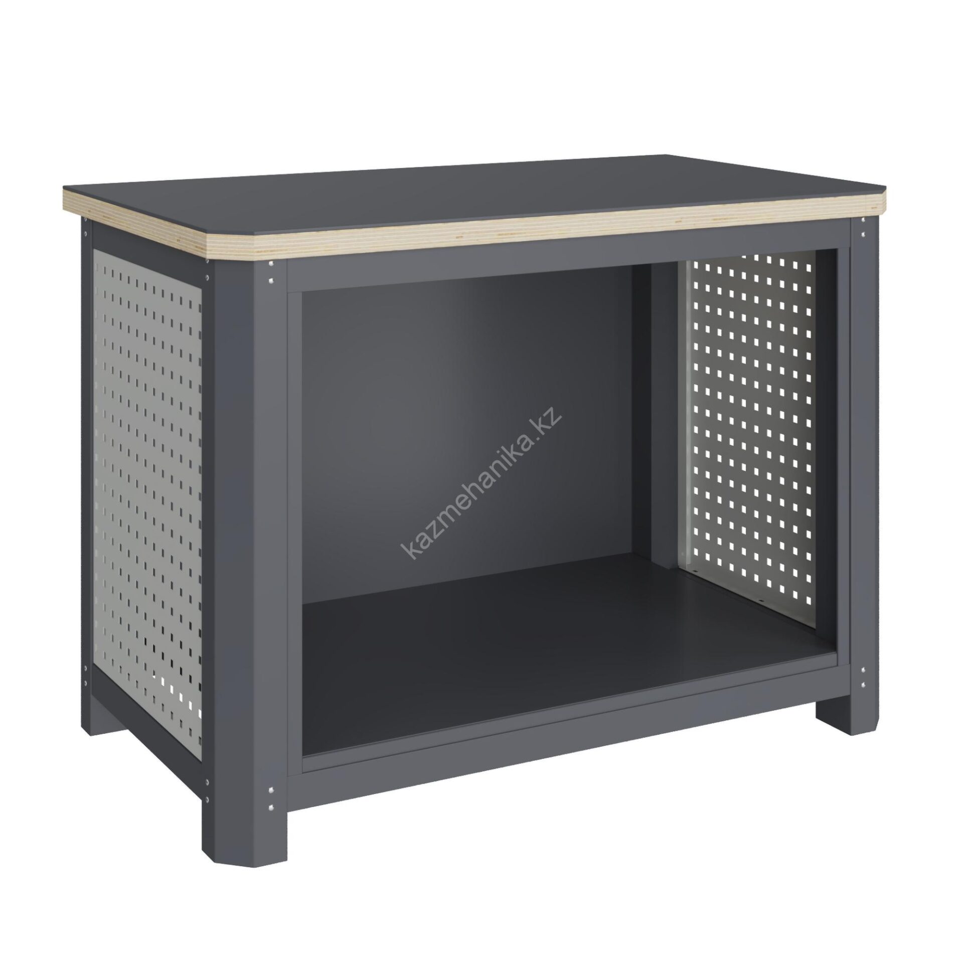 Верстак Верстакофф MECHANIC: MCN 1252.0.11 состоит из столешницы шириной 1193 мм, рамы верстака, состоящей из опор, перемычек, боковых перфопанелей, двух комплектов полка-стенка SW1.