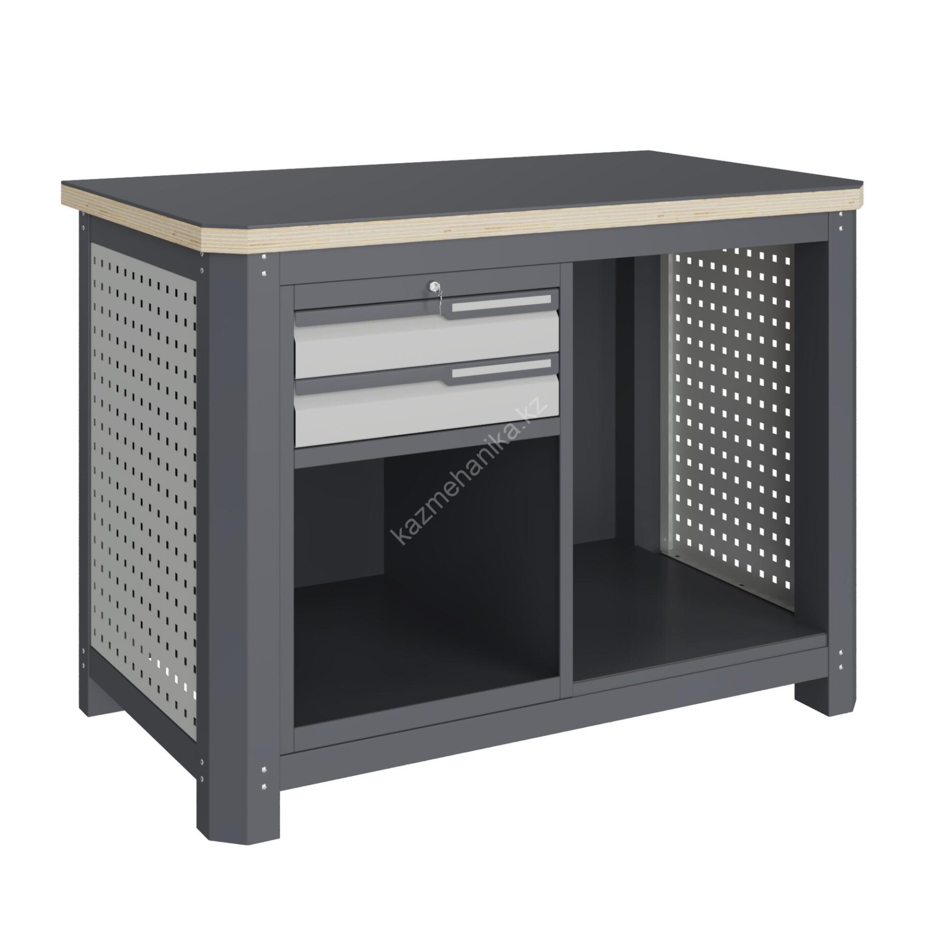 Верстак Верстакофф MECHANIC: MCN 1252.S2.12 состоит из столешницы шириной 1193 мм, рамы верстака, состоящей из опор, перемычек, боковых перфопанелей, комплекта полка-стенка SW1, модуля с двумя ящиками S2 и комплектом полка-стенка SW2. Предназначен для выполнения сборочных, ремонтных, слесарных, монтажных и других видов работ на производстве, в сервисных центрах, мастерских, гаражах.