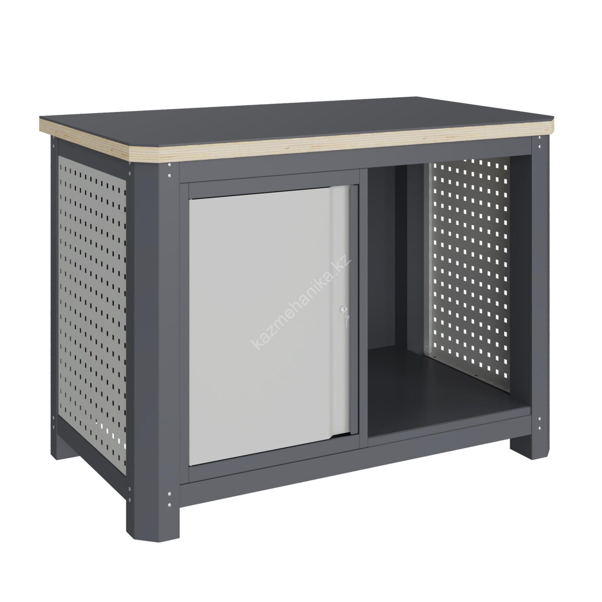 Рабочее место MECHANIC: MCN 1252.S7.1 состоит из столешницы шириной 1193 мм, рамы верстака, состоящей из опор, перемычек, боковых перфопанелей, небольшого модуля S7(c дверцей) и комплекта полка-стенка SW1. Предназначен для выполнения сборочных, ремонтных, слесарных, монтажных и других видов работ на производстве, в сервисных центрах, мастерских, гаражах.