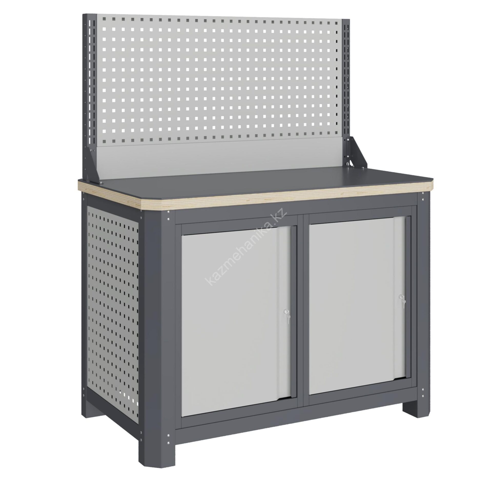 Рабочее место MECHANIC: MCN 1252.S77-1 состоит из столешницы шириной 1193 мм, рамы верстака, состоящей из опор, перемычек, боковых перфопанелей, двух небольших модулей S7 (модуль с дверцей), экран с кронштейнами. Предназначен для выполнения сборочных, ремонтных, слесарных, монтажных и других видов работ на производстве, в сервисных центрах, мастерских, гаражах.