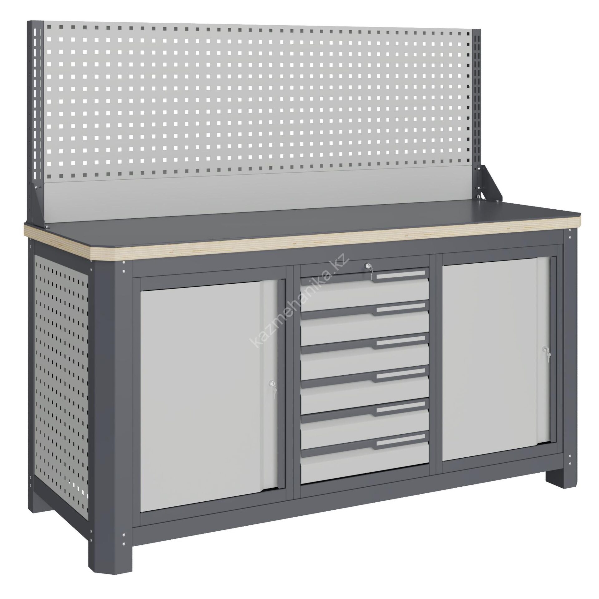Верстак серии MECHANIC: MCN 1552.S677-1 состоит из столешницы шириной 1493 мм, рамы верстака, состоящей из опор, перемычек, боковых перфопанелей, малых модулей S6, S7, одинарного экрана с кронштейнами. Предназначен для выполнения сборочных, ремонтных, слесарных, монтажных и других видов работ на производстве, в сервисных центрах, мастерских, гаражах.