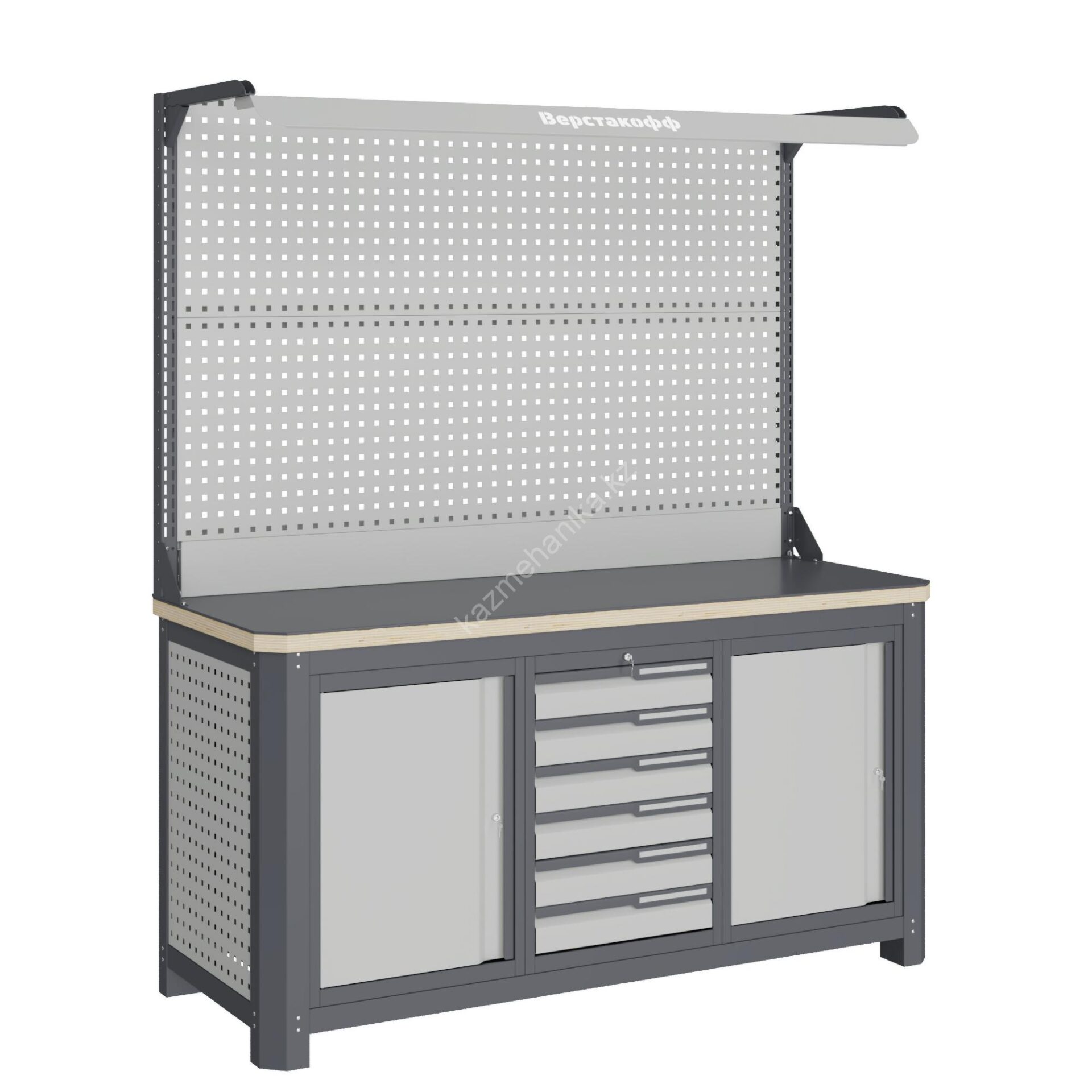 Верстак серии MECHANIC: MCN 1552.S677-2F состоит из столешницы шириной 1493 мм, рамы верстака, состоящей из опор, перемычек, боковых перфопанелей, малых модулей S6, S7, двойного экрана с кронштейнами и комплекта освещения. Предназначен для выполнения сборочных, ремонтных, слесарных, монтажных и других видов работ на производстве, в сервисных центрах, мастерских, гаражах.