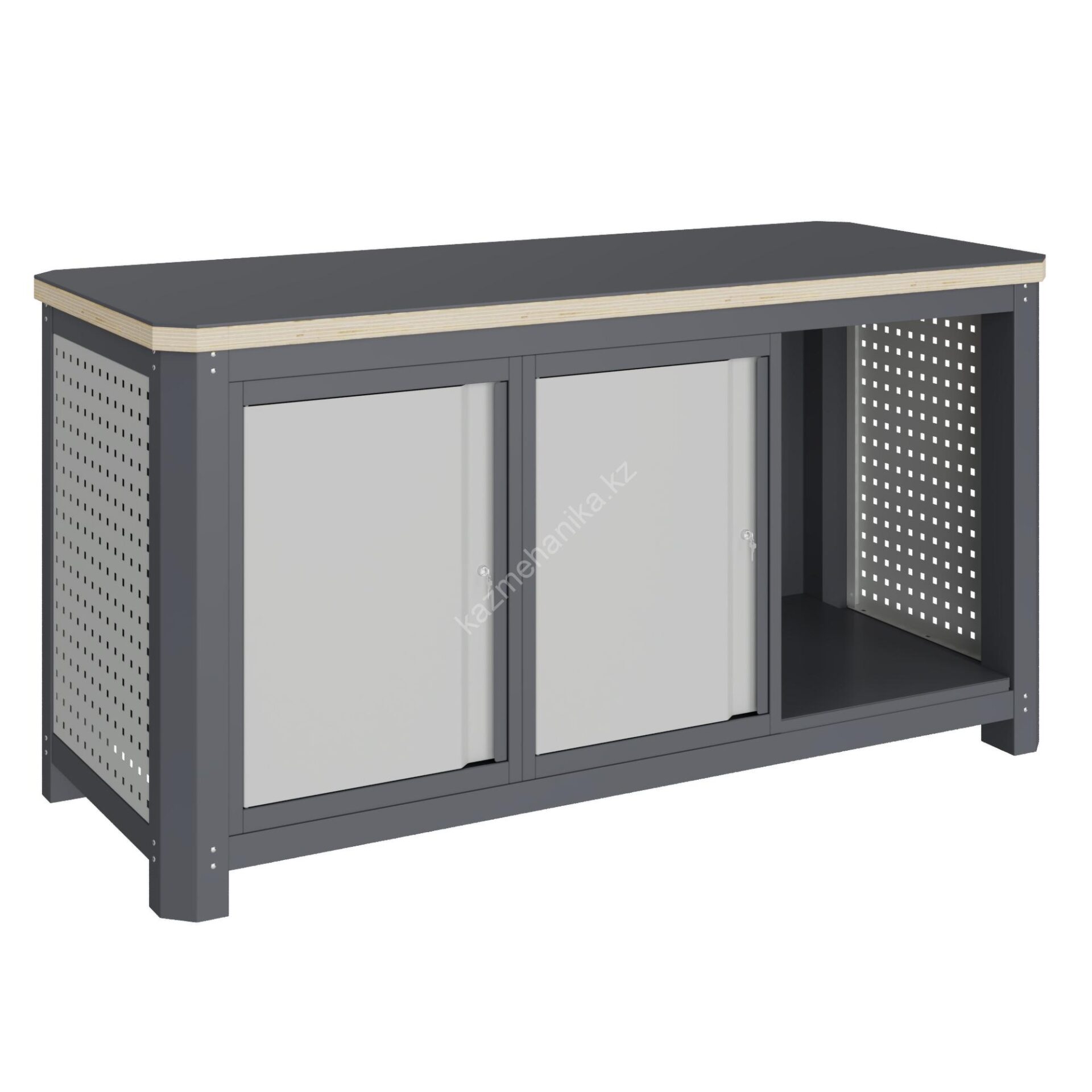 Верстак серии MECHANIC: MCN 1552.S77.1 состоит из столешницы шириной 1493 мм, рамы верстака, состоящей из опор, перемычек, боковых перфопанелей, малых модулей S7 и комплекта полка-стенка SW1. Предназначен для выполнения сборочных, ремонтных, слесарных, монтажных и других видов работ на производстве, в сервисных центрах, мастерских, гаражах.