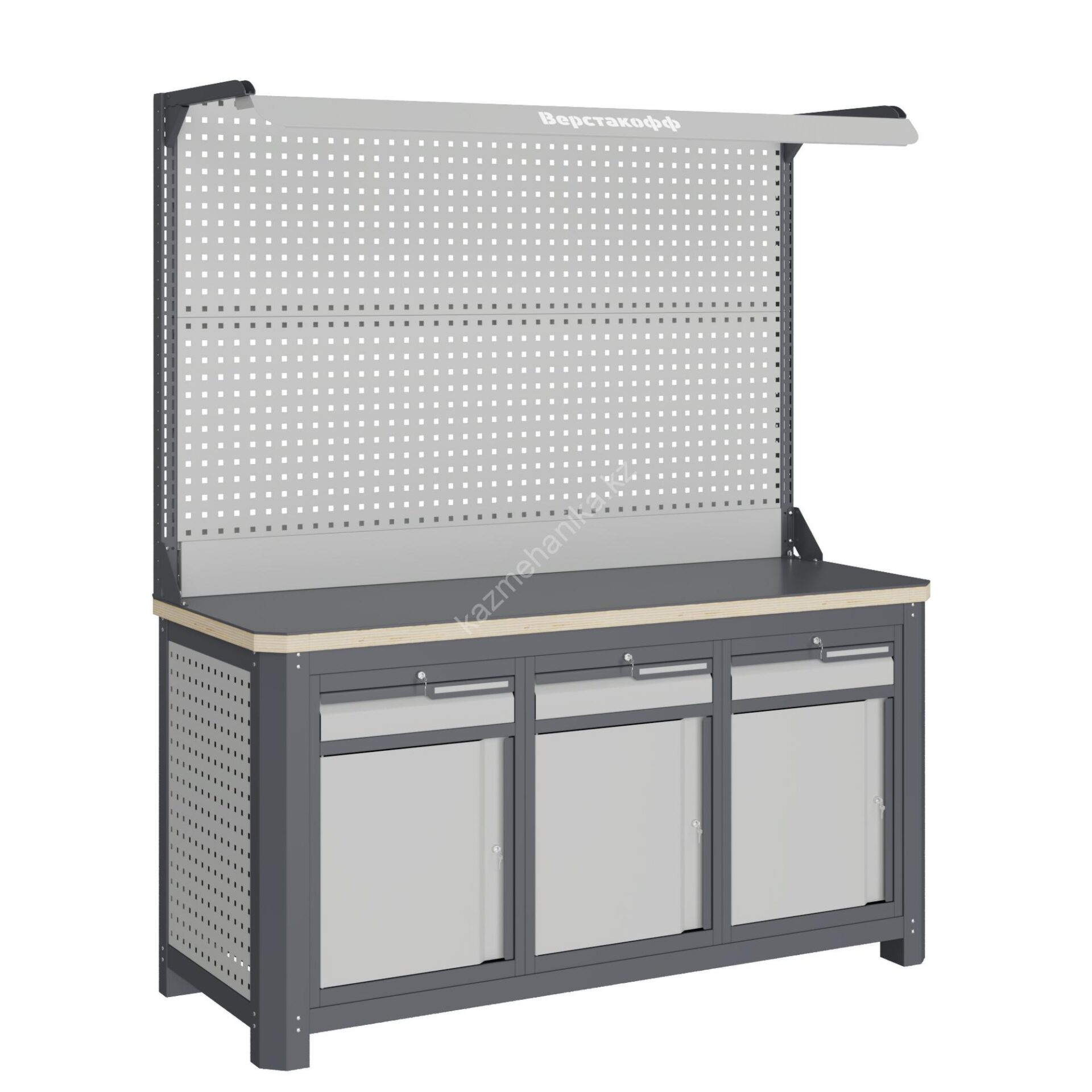 Верстак серии MECHANIC: MCN 1552.S888-2F состоит из столешницы шириной 1493 мм, рамы верстака, состоящей из опор, перемычек, боковых перфопанелей, четырех малых модулей S8, двойного экрана с кронштейнами и комплектом освещения. Предназначен для выполнения сборочных, ремонтных, слесарных, монтажных и других видов работ на производстве, в сервисных центрах, мастерских, гаражах.