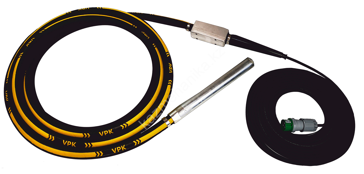 Глубинный вибратор серии VPK состоит из: булавы, в которой расположены электрический двигатель, вал и эксцентриковая масса, рабочего рукава, в котором находятся провода питания электрического двигателя, герметичного выключателя, сетевого кабеля с вилкой.